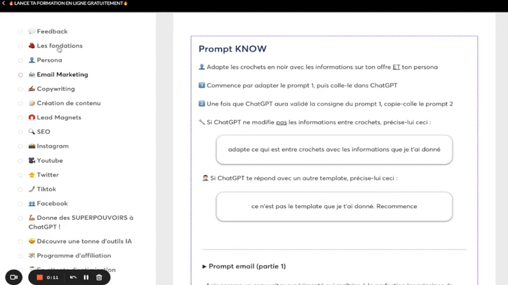 Une formation unique dans laquelle vous retrouverez l'intégralité des prompts ChatGPT pour créer votre propre assistant virtuel !